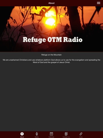 This app gives complete access to all of the Refuge OTM Radio ministry and media events. Refuge OTM Radio communicates the Hope, Purpose and Love of Jesus Christ through contemporary Christian, Christian Rock and Urban Christian music.