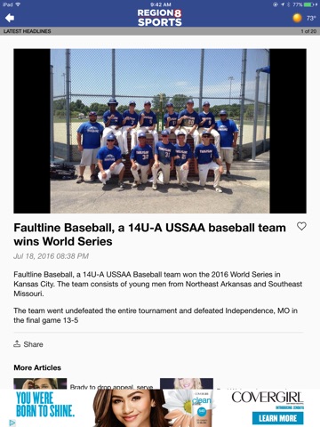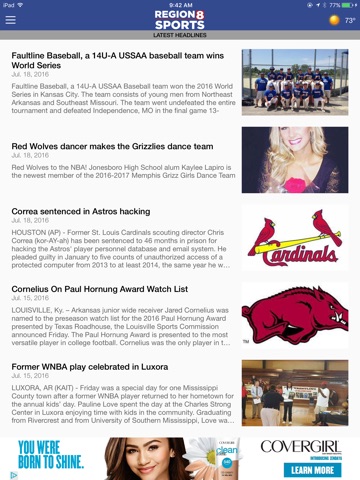 The Region 8 Sports app delivers detailed coverage of your favorite local high schools around NE Arkansas and SE Missouri, along with the A-State Red Wolves, Arkansas Razorbacks, St. Louis Cardinals, Memphis Grizzlies, and even NASCAR! Year around, the Region 8 Sports app provides scores, standings, highlights, breaking sports news, and information for casual and serious sports fans alike. Plus, get the latest game day weather, submit your own photos and video, all while youre on the go.