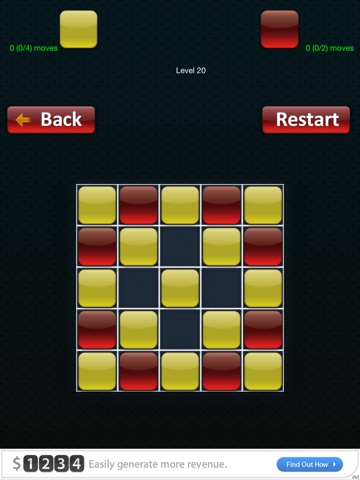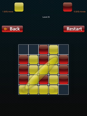In Relative Puzzle you have to move blocks around and turn them all to yellow. How ? easy, place blocks on a line, be it horizontal, vertical or diagonally, and anything inbetween the first and last block will turn to the same color. The only catch is that you have to do it smart ! Try to do it with the least amount of yellow and red moves. The score depends on it.