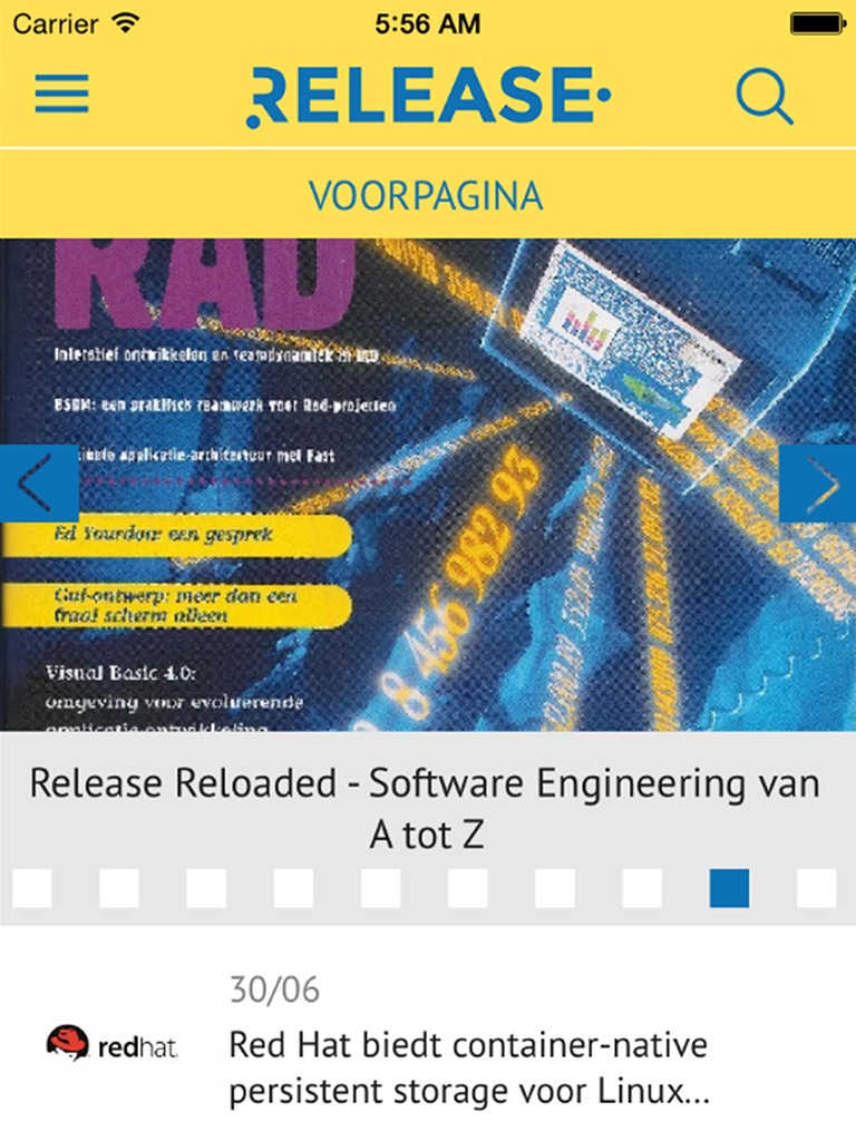 Softwaresystemen worden groter en complexer. Continu werken we aan nieuwe methoden, technieken en tools om het bouwen van applicaties te vergemakkelijken en te versnellen. Wie niet achterop wil raken moet weten wat zich op dit gebied zoal afspeelt. Release biedt praktische informatie en tips voor analisten, ontwerpers, software engineers en testers. Een greep uit de relevante onderwerpen: methoden en technieken zoals UML, Agile, het gebruik van use cases, ontwikkelen voor Mobiele Apps, DevOps, Cloud development op platformen als Azure, alsmede uiteraard de ontwikkelingen op het gebied van applicatieintegratie, microservices en het testen van software. Release biedt een nieuwsrubriek met berichten over nieuwe versies en producten, relevante onderzoeken en agenda. Verder interviews en praktijkverhalen die inzicht geven in de praktijk van andere teams. Met haar eigen Vacature portal brengt Release ook vraag en aanbod op de arbeidsmarkt bij elkaar.