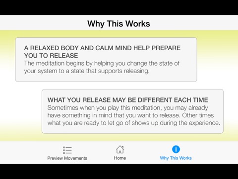 Your experience may be different each time you play the Releasing Mindtoon™ meditation. You may not be aware of what you are holding on to that you no longer need before you begin. Allow the experience to unfold.