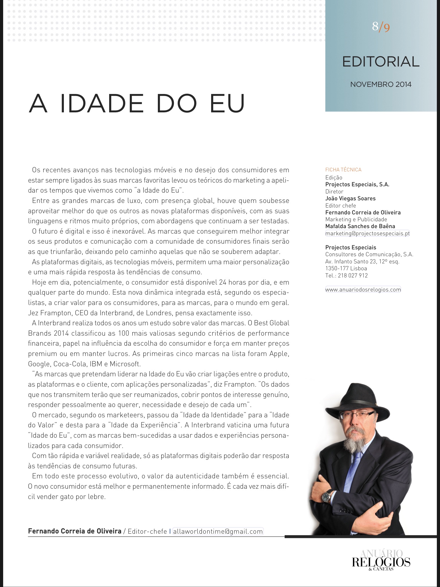 A marca Anuário Relógios & Canetas está disponível, em versão mensal, grátis, no seu site, na Internet, e nas aplicações iPhone e iPad. É a primeira vez que, no mercado nacional, existe um mensário dedicado à Relojoaria, Joalharia, Instrumentos de Escrita e Luxo.