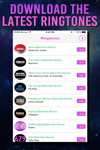 Jams like Work by Rihanna, My House by Flo Rida, 7 Years by Lukas Graham, as well as thousands of other ringtones of all your favorite songs.