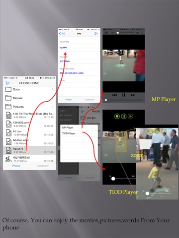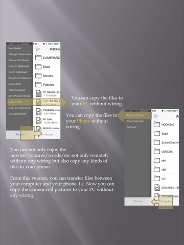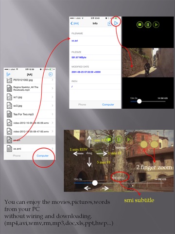 1. iPhone can read any files from your computer without any installation on your PC(MS, Linux-Samba,Unix-Samba ,FTP Server etc).