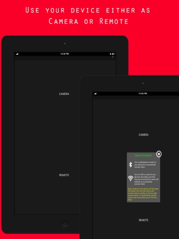 Use your iPhone or iPad as wireless camera, ip camera, remote camera with help of this app. Our app helps you to connect two iOS devices over wifi, local hotspot or bluetooth and use one device as remote controller and other as camera.
