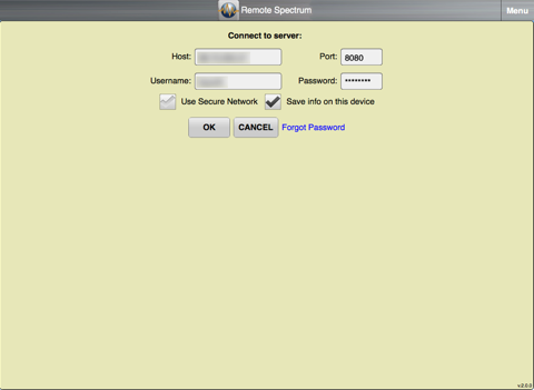**IMPORTANT NOTE ** -- You must have the Remote Spectrum server software running on a server in your cable plant for Remote Spectrum to display the captured spectrum information. You will not be able to use the app until the server software is in place and users have been added by your administrator, and you will need a license key from ZCorum to run the server software and client applications. Please contact ZCorum ([email protected]) for pricing and additional information about how to obtain the Admin software.