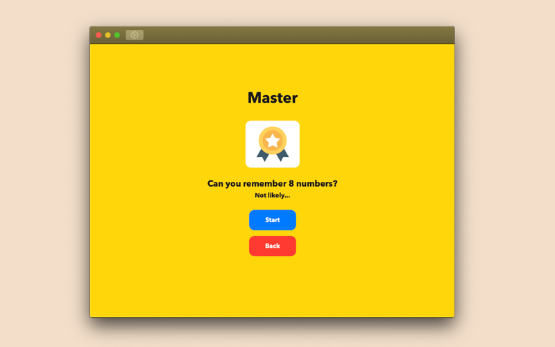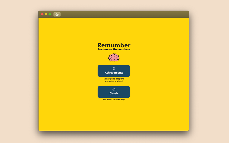 Remumber is a number memory game where you test and train your ability to remember numbers.
