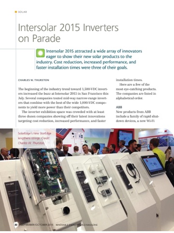 Renewable Energy World Magazine is a BPA Audited, global magazine for all renewable energy professionals – solar, wind, bio, geothermal and hydro power. Each issue of Renewable Energy World provides vital information for business-to-business success with expert insight into renewable energy markets, technology, policy and finance from the worlds most active regions.