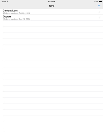 Renewables allows you to manage items that are consumed on a regular basis and used up after a certain time (such as contact lenses, pills/medicine, office material and so on). You specify your current stock of the items that will be used up by specifying the amount you have, when you started using the amount you have and how often you consume your items. Based on the entered data, Renewables calculates how many days are left before your stock is empty and when that date will be.