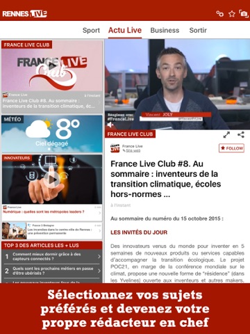 Avec lapplication Rennes Live, accédez au panorama complet de lactu rennaise.