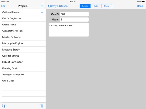 This app is great for handyman or small-scale contractor jobs. Impress your customers with your use of the latest app on the latest state-of-the-art touch screen technology! Email them a summary of the project, or all the project entries with small photos, and keep them up-to-date.