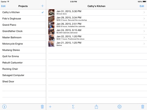 Renovate lets you take before, after, and in-progress pictures of your renovation.