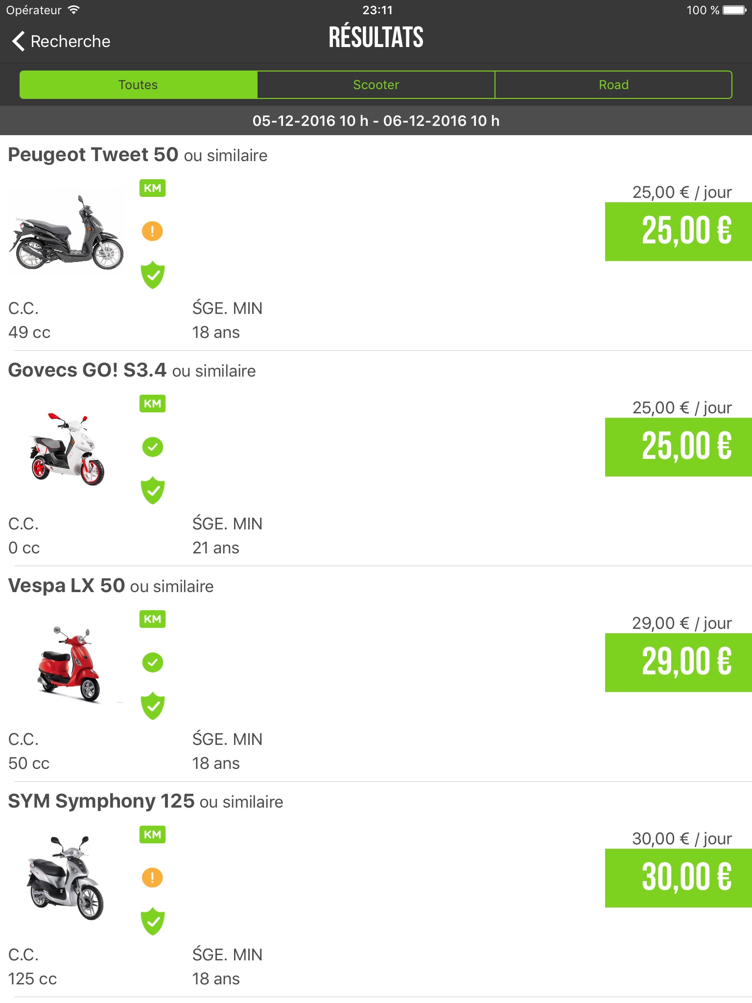 Through our dynamic filters, we can classify the bikes by their cubic capacity and by their fuel comsumption , weve also added electric vehicles to our fleet.