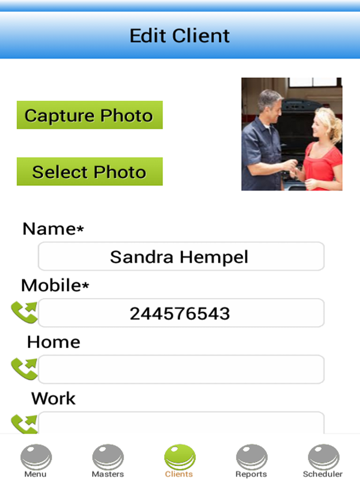 Under the Masters section each technician can create his profile where all clients and appointments can be recorded as record of previous, present and future jobs to be done.