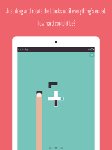 The goal is simple. You have to rearrange the blocks so that they all form valid connected equations.
