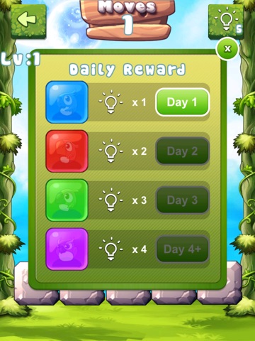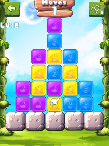In each level, there are a number of glass bricks with different color. Your goal is to crush all the bricks by moving, dragging and swapping the bricks. Three or more bricks with same kind in a row or column will be crushed.