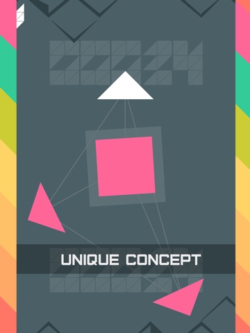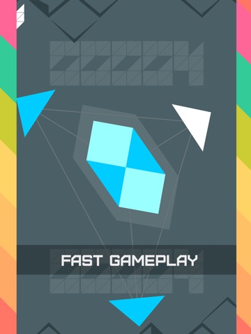 Connect approaching triangles with cube to form a bigger one. The aim of the game is to form as many cubes as possible. You can rotate a cube that’s in the middle of the screen by sliding your finger any direction you want. Adjust cube’s rotation so that it fits triangles moving direction and can be connected, otherwise this triangle will destroy the other triangles you already connected if any or will make a central cube explode and you will lose if no triangles were connected at that time at all. You do not need to do anything else to connect triangle with cube - just let them collide. White triangle indicates that it can be connected with cube.