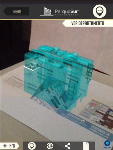 Por medio de RESIDE 3D podrás conocer de forma virtual los desarrollos de Parque Jardín en Azcapotzalco y Parque Sur en Tlalpan, Distrito Federal. Para experimentar la realidad aumentada, sólo debes enfocar el flyer de Parque Jardín o Parque Sur y se desplegará el edificio del desarrollo, escoge el departamento de tu preferencia con sólo tocarlo y selecciona tu nuevo departamento para apreciar el interior más a detalle. ¡Vive la experiencia 360°! Cambia el estilo de tu departamento eligiendo entre moderno, contemporáneo y minimalista.