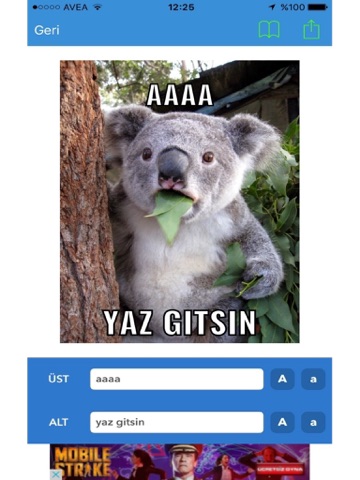 Kendi fotoğraflarınızın veya uygulama içindeki fotoğrafların üzerine yazılar yazabilir ve sosyal medya veya whatsapp gibi mesajlaşma uygulamalarından gönderebilirsiniz.