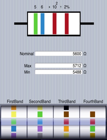 ResistorColor is a simple app that allows you to calculate a resistor value according to its color stripes and tolerance.