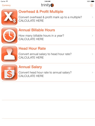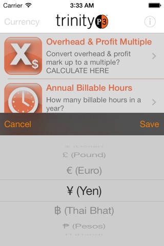 The TrinityP3 Resource Rate Calculator iPhone app has all of the market variables to allow the application to be used in all the major global markets including: