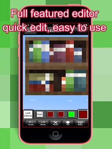 1. You can only texture blocks 2. The bottom row of pixels isnt on the screen so you cant even texture the full block 3. A very ugly and hard to use interface I want a refund