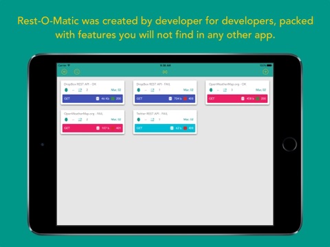 Rest-O-Matic was created by developer for developers, with a great user interface and packed with features you will not find in any other app.