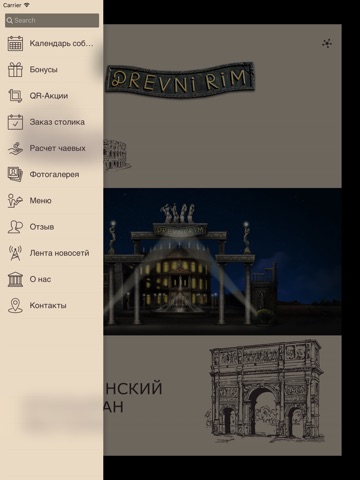 «Древний Рим» это ресторан в г. Караганда, с уникальным дизайном и неповторимым интерьером в стиле римской эпохи. Каждый сантиметр нашего ресторана наполнен глубоким смыслом, историей и окутан легендами. В нашем ресторане вы можете не только вкусно поесть, но и совершить экскурсию по этажам и залам, и ознакомится с римской, армянской и казахской культурой и интерьерами. В вашем распоряжении главный зал на 250-300 человек, 3 малых зала вместимостью от 40 до 80 человек, 8 vip залов от 4 до 20 человек, остров любви и бельэтаж на 150-200 человек.