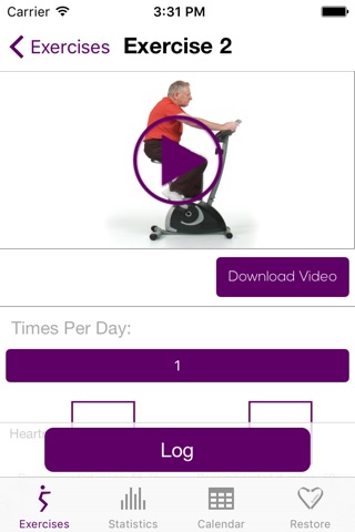 Logging Exercise Completion Monitoring Exercise Effort & Injury Pain, Maximum Heart Rate, Time spent exercising Exercise Diary Reminder