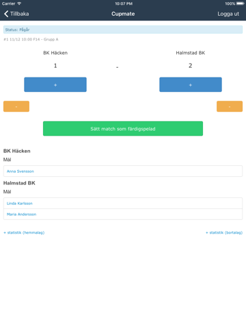 * Redovisa resultat under eller efter matchen