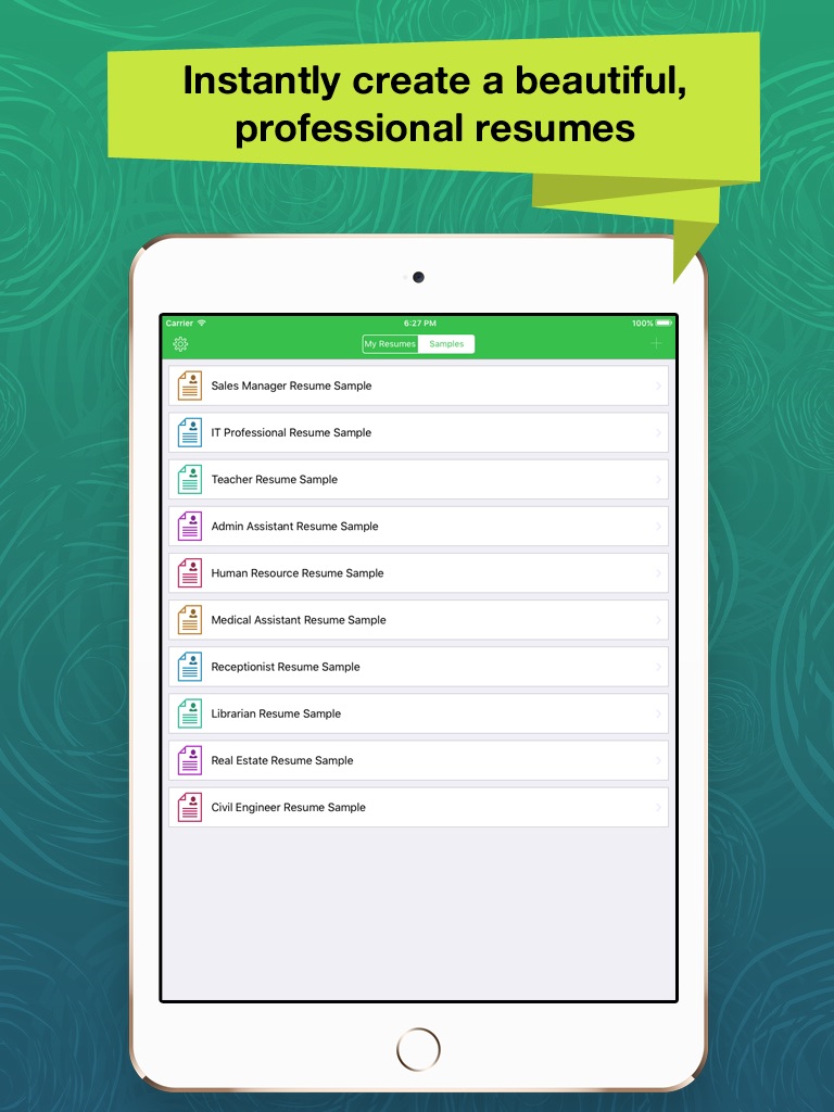 Resume Apex is a beautiful and professional tool to help you create effective resumes within minutes. You can design eye catching resumes for all of your potential employers. With a few taps your perfect resume is ready on the go! Simply fill in your information and Resume Apex produce a clean, correctly formatted PDF resume you can email directly, post online or print out.