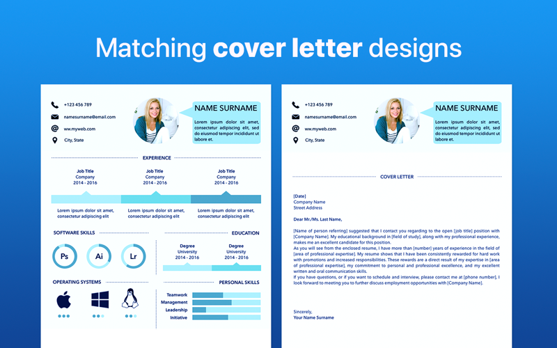 Choose from 100+ designs to stand out from the competition and grab your employers’ attention like never before! It’s quick and easy to use, and you don’t need to spend precious time on formatting.