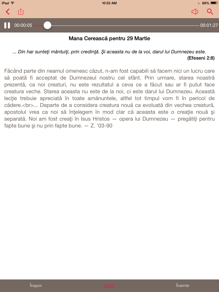Resursele audio continua in timp ce folositi alte aplicatii, doar apasati pe butonul Home si audio va continua. Daca primiti un apel telefonic in timp ce ascultati, audio sa va opri si sa va continua cand terminati apelul telefonic.