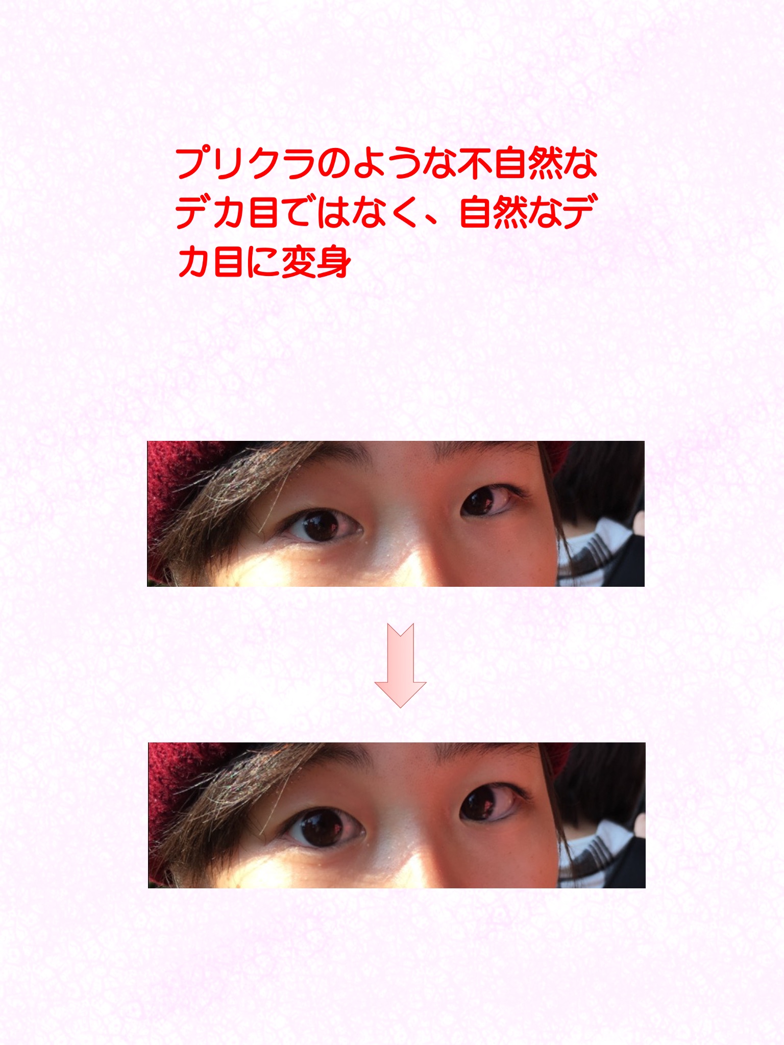You can see if it is possible to look at the screen shot, but it is transformed into very cute photo becomes a very natural big eyes.