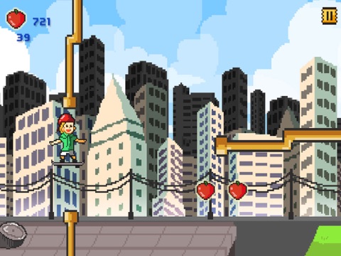 Get ready for a crazy 8-bit, retro style skateboarding game! In this action packed skater game, you play a boy who is out on the town for the first time. Jump over obstacles and explore this city and find out just how far you can go!