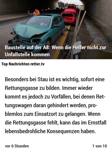 In den übersichtlichen Kategorien der App werden aktuelle und relevante Themen gebündelt und für die Leser praktisch aufbereitet: Die retter.tv App fasst auf jeder Seite genau einen Beitrag prägnant zusammen. Durch die einfache Bedienung der App kann man durch Gesten von Seite zu Seite blättern und erhält so einfach und schnell einen Überblick, welche Themen in der Welt der Helfer und Retter aktuell sind.