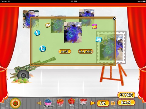 Now with this free version you only get to use our default images and store the splatted image on the gallery of images. But with the next pro - paid version you will have the opportunity to upload your own image and then share or save the splatted image on your photo gallery, facebook, twitter, email or instagram.