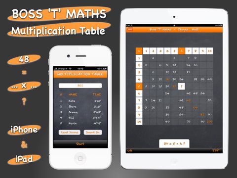 Boss T Maths "Reverse Multiplication Table" is an app that helps acquiring and revising multiplication tables - up TO 10*10.