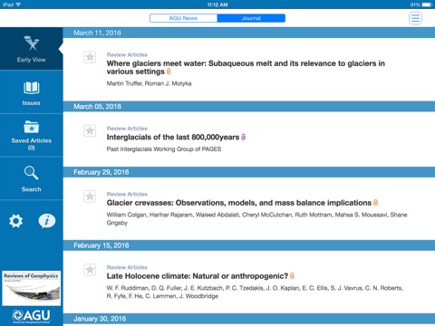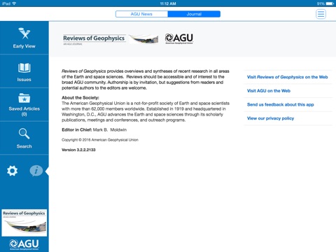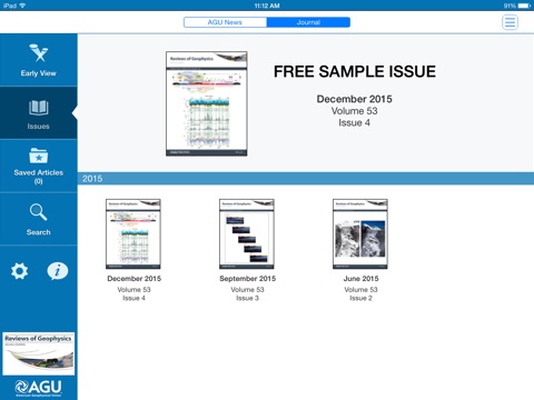 Leading journals from the American Geophysical Union are now available on your iPad and iPhone. Fresh from the newsstand, Reviews of Geophysics distills and places in perspective previous scientific work in currently active subject areas of geophysics. Contributions evaluate overall progress in the field and cover all disciplines embraced by AGU.