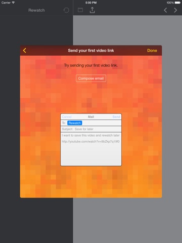 With Rewatch you dont need to send links to yourself or bookmark them in your browser. Simply send the links to rewatch and have them all in one convenient place to watch and share.