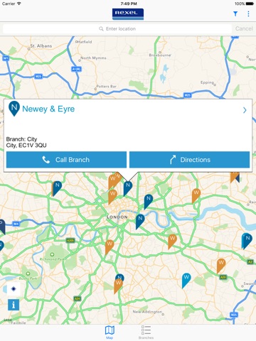 Once you have found your nearest Rexel UK branch you can contact them or get driving directions through this App.
