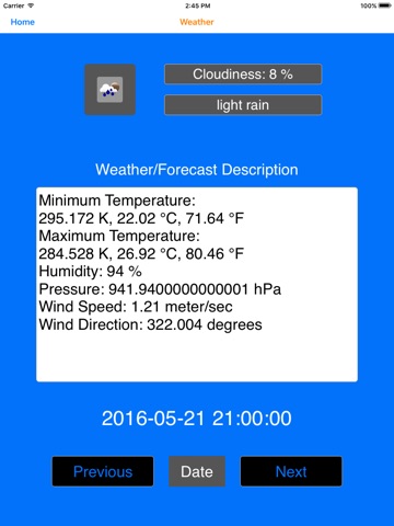 Weather forecast for the travel city.