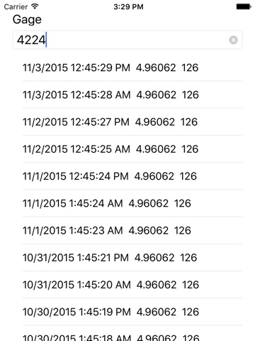 After polling a gage, data will be displayed. The first column in the data contains the date and time that the report was received, the second column contains the scaled value, and the third column contains the raw value.