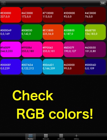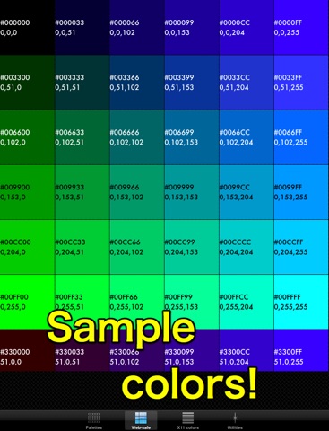 You easily can create any colors on palettes, also can check Web-safe and x11 colors.