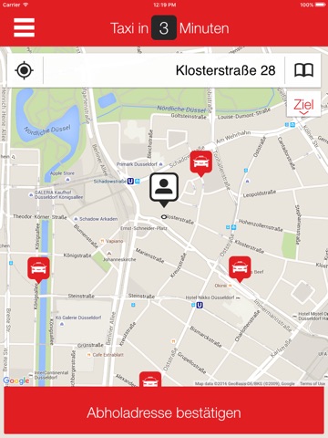 Mit der Taxi-App von Rhein-Taxi 212121 bestellen Sie Ihr Taxi mit nur 2 Klicks.