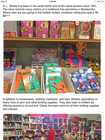 • The best places to shop: did you know theres an unassuming store in town where you can buy a "Mr. Bill", chattering teeth, and other great toys you remember from your childhood? This app will tell you exactly where to find it (using GPS).