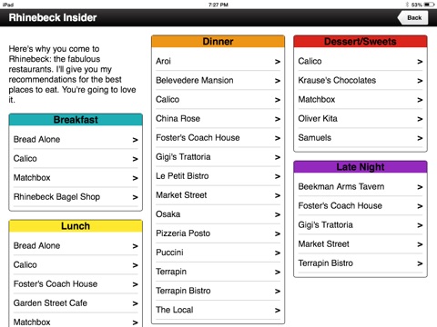 Rhinebeck, New York is a truly unique little town that boasts an incredible number of fine restaurants, boutiques, spas and places to relax. But there are "hidden gems" - stores not everyone knows about and to find them - and to get the most from every store or restaurant you need an app created by an insider - 15 year resident Michael Britt and his wife. This app will tell you what other "generic" trip apps wont: