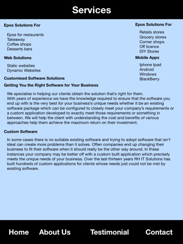 RH IT Solutions is a fast growing Epos software and Fast Food online ordering system provider based in the UK. We offer first class customer service. The Epos management system we have produced is enables you to manage and take orders with ease and speed. The Epos management system itself includes touch screen technology allowing your staff to select products from a virtual menu provided by the system, which is fast and easy to use. All the calculations are automatically done for you by the system, and once the order has been taken a receipt is automatically printed out by the systems thermal printer, you can set the time to delivery on each order. See our Features page for all the features of the system.