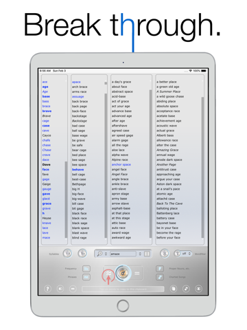 Break free from the limitations of traditional rhyming dictionaries with 30 different types of rhymes: Additive Rhyme (augmented rhyme), Alliteration (head rhyme), Amphisbaenic Rhyme, Apocopated Rhyme, Assonance (oblique rhyme), Broken Rhyme, Consonance (suspended rhyme), Diminished Rhyme, Double Assonance, Double Consonance, Elided Rhyme, Family Rhyme, Feminine Pararhyme (minor accent rhyme), Final Syllable Rhyme, First Syllable Rhyme, Full Assonance, Full Consonance, Half Double Rhyme, Homophones (echo rhyme), Intelligent Rhyme, Light Rhyme (uneven rhyme), Metaphone, Pararhyme, Perfect Rhyme (true rhyme), Related Rhyme, Reverse Rhyme, Rich Rhyme (identical rhyme), Soundex, Trailing Rhyme (semirhyme), Weakened Rhyme (unaccented rhyme)