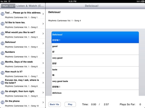 - You can watch the lyrics on screen as you listen to the songs. And, you can choose to see the Cantonese words written Phonetically or with Characters.